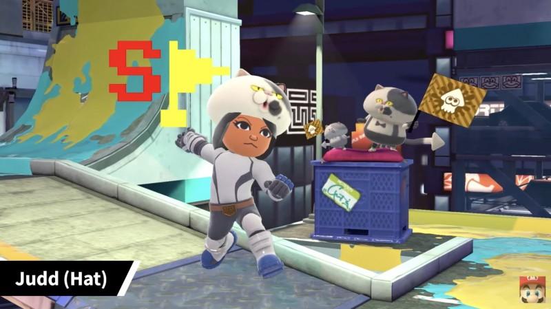 Splatoon은 또한 Mii 캐릭터가 착용할 수 있는 헤드웨어로 더 많은 사랑을 받고 있습니다. 하나는 Mii를 Octoling처럼 보이게 하는 가발이고, 다른 하나는 모두가 좋아하는 Turf War 고양이 심판과 지구에 남아 있는 두 마리의 포유류 중 하나(현재로서는) Judd의 모양이 특징인 모자입니다.
