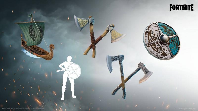 Epic Games는 Ezio Auditore 복장(및 Ezio의 히든 블레이드 곡괭이 및 Assassin’s Strike Emote), Eivor Varinsdottir 복장, Eivor의 Shield Back Bling(내장 Viking War Cry Emote 포함), Raven Clan 곡괭이의 Handaxes(as 내장된 Viking War Cry Emote) 및 Wolf-Kissed Longboat Glider는 Animus 번들에서 Tales의 일부로 개별적으로 또는 모두 함께 구입할 수 있습니다.
