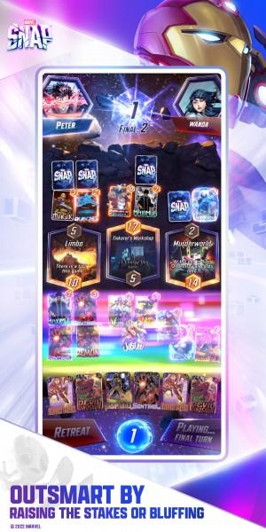 “150개 이상의 상징적인 Marvel 캐릭터가 등장하는 Marvel Snap은 80년의 놀라운 Marvel 역사와 아름답고 새로운 독창적인 일러스트레이션을 결합하여 격렬한 플레이어 대 플레이어(PVP)의 빠른 진행 CCG에서 수집 가능한 수백 개의 예술 작품을 제공합니다. “라고 보도자료가 나온다. “Marvel Snap은 최고 순위를 놓고 경쟁하는 새로운 방법을 도입하여 플레이어가 ‘Snap’으로 판돈을 늘리고 두 배로 줄일 수 있습니다. 이 혁신적인 메커니즘에 내재된 마인드 게임과 허세는 진정으로 마스터하기가 불가능한 게임을 만듭니다.”