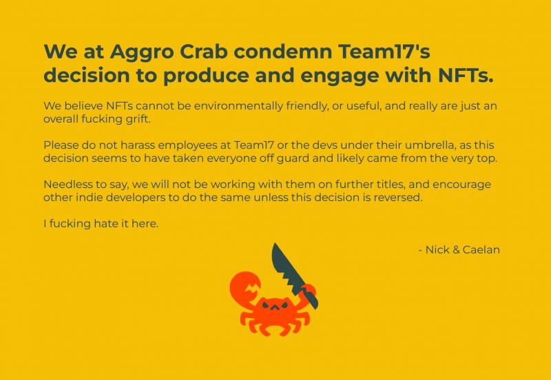 최근 NFT 계획을 발표한 다른 스튜디오의 사례에서 보았듯이 팬들은 소셜 미디어에서 그다지 기뻐하지 않고 표현했습니다. 그것은 놀라운 일이 아닙니다. 왼쪽 필드에서 나온 것은 Team17의 스튜디오 파트너 중 일부가 이 계획을 분명히 알지 못하고 비슷하게 화를 냈다는 사실이었습니다. 결과적으로 이 개발자 중 일부는 자신의 타이틀이 NFT를 지원하지 않을 것이라고 독립적으로 발표하기 위해 Twitter에 참여했습니다.