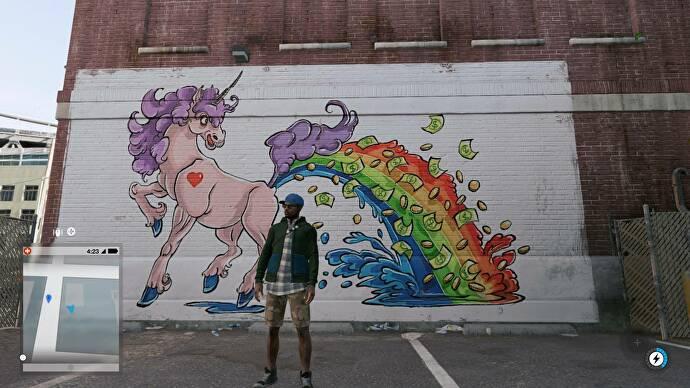 더욱 인상적인 것은 도시 자체입니다. Aiden의 시카고는 그처럼 지루하고 축축했습니다. Marcus의 샌프란시스코는 절대적인 기쁨입니다. 구름 한 점 없는 하늘에서 태양이 끊임없이 내리쬐며 아래 거리의 모든 다채로운 세부 사항을 강조합니다. 보도는 보행자로 가득 차 있고, 이 크기의 게임에서 기대할 수 있는 보이지 않는 컨베이어 벨트의 마네킹과는 거리가 멀습니다. 최소한의 범위의 이모티콘에 액세스할 수 있지만 NPC를 관리하는 다양한 시스템과 상호 작용할 수 있는 규모는 오픈 월드 도시에서 가장 유기적이고 혼란스러운 재미를 생성할 수 있습니다.