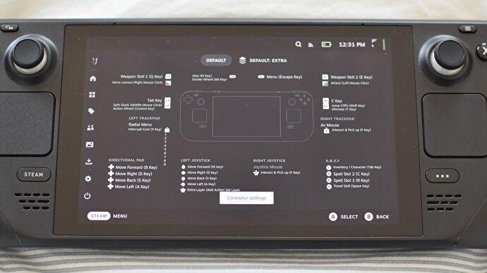 다행스럽게도 선택하고 수정할 수 있는 커뮤니티 제작 컨트롤 레이아웃이 이미 여러 개 있습니다. 제 경우에는 Deck가 자동으로 Steam 사용자 Turulo의 레이아웃으로 기본 설정되었습니다. 이를 통해 왼쪽 트랙패드의 방사형 메뉴를 효과적으로 사용하여 장비를 장착하거나 V Rising의 액션 바에서 항목을 사용할 수 있었고, 후면 버튼을 한 번 또는 두 번 탭하면 게임에서 일반적으로 무수한 키에 걸쳐 입력을 배포할 수 있습니다.